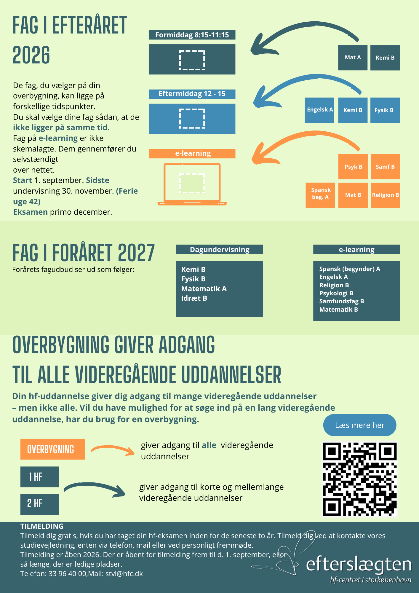 Alle HF’ere kan tage en overbygning på Efterslægten. Du behøver ikke at have taget din HF på Efterslægten for at læse overbygningen hos os.